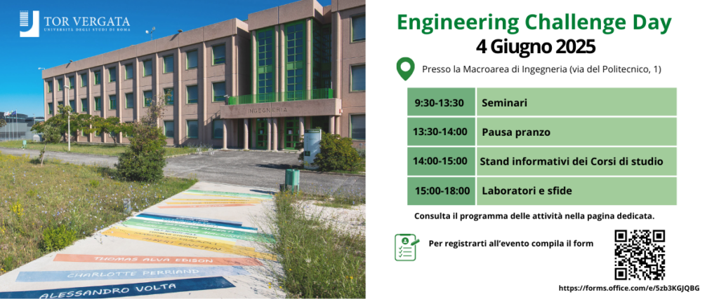 Engineering Challenge Day – Mercoledì 4 giugno 2025 Sei incuriosito dal mondo dell’Ingegneria? Vuoi saperne di più su alcuni degli argomenti su cui stanno…